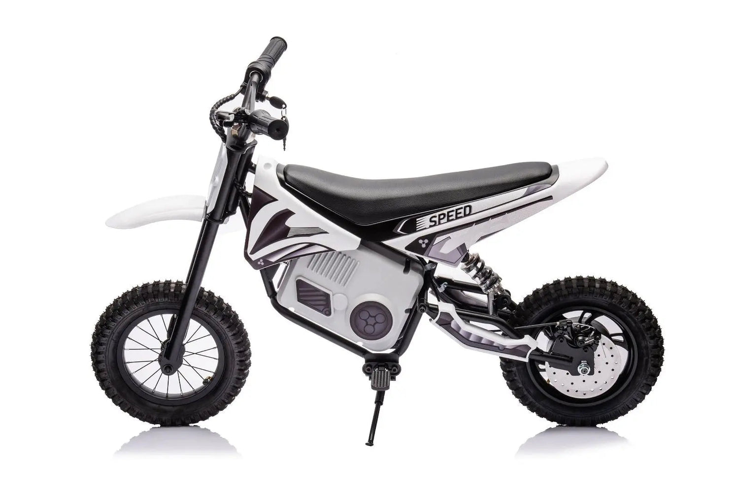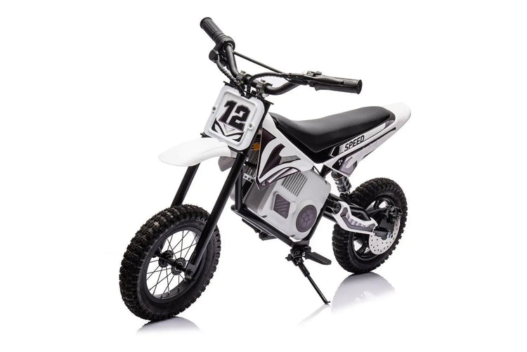 Unleash the thrill of off-roading with the Freddo Electric Dirt Bike 36V, tailored for teens aged 14 and above. It boasts a robust brushless hub motor that delivers a max speed of 16MPH (25KMH) and carries a load of up to 80kgs with ease. Designed for performance and durability, it features stepless speed changes, air-filled rubber wheels for superior traction, and rear disc braking for reliable stopping power. With a key ignition start switch and a manual bell, this bike ensures a safe and exhilarating ride. Charge up for 8-12 hours and enjoy up to 50 minutes of adventure.